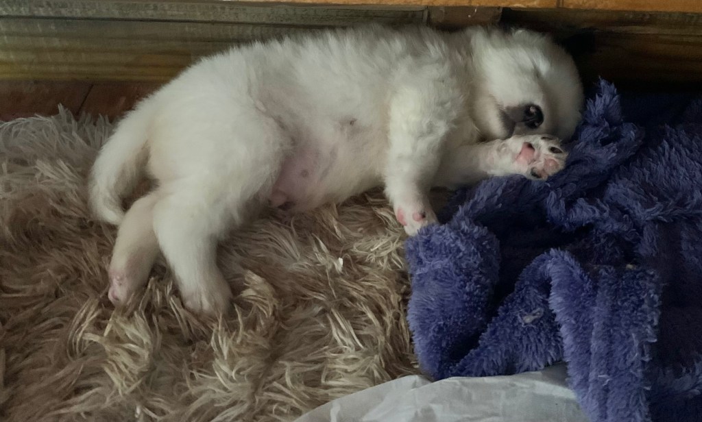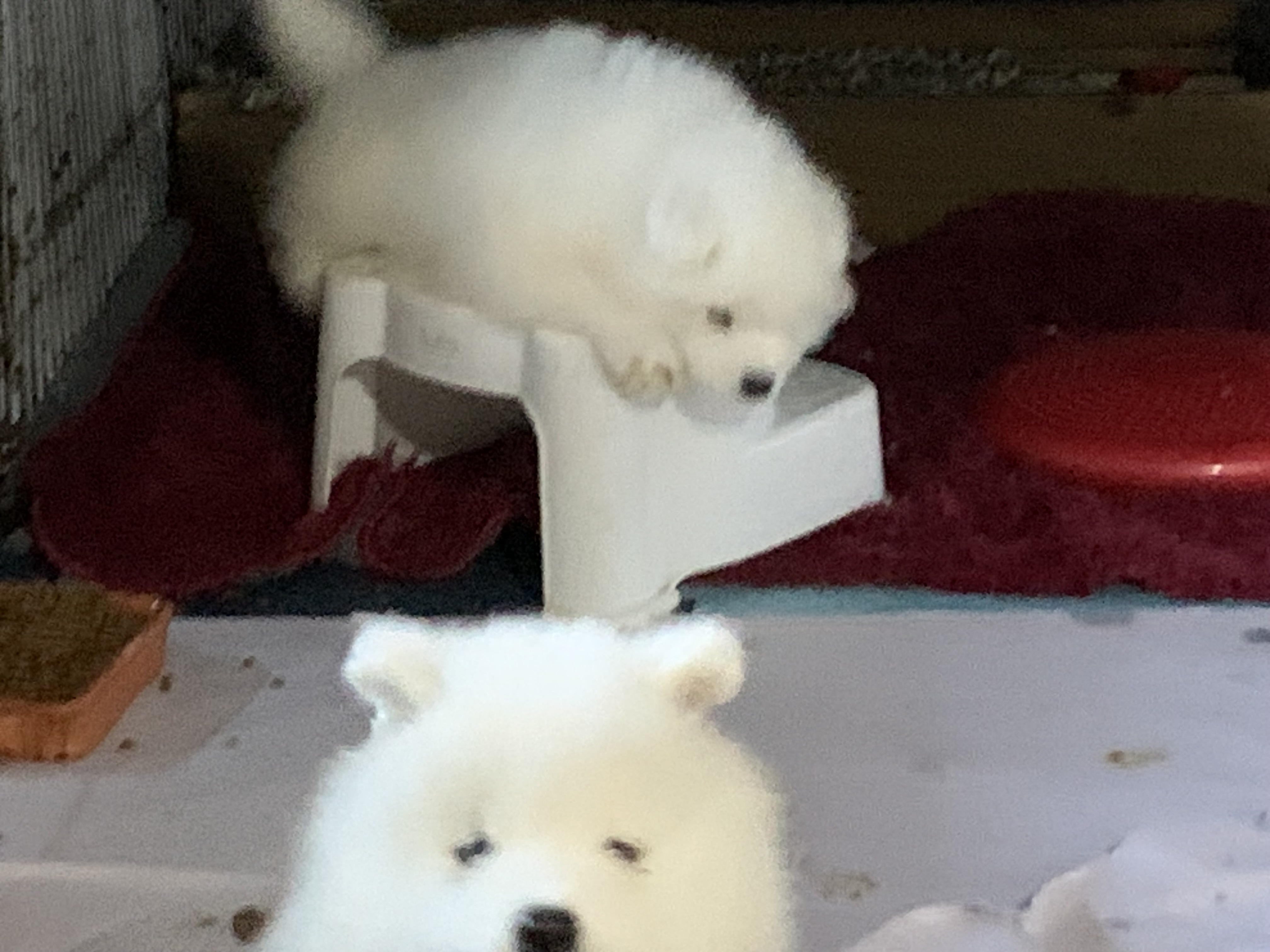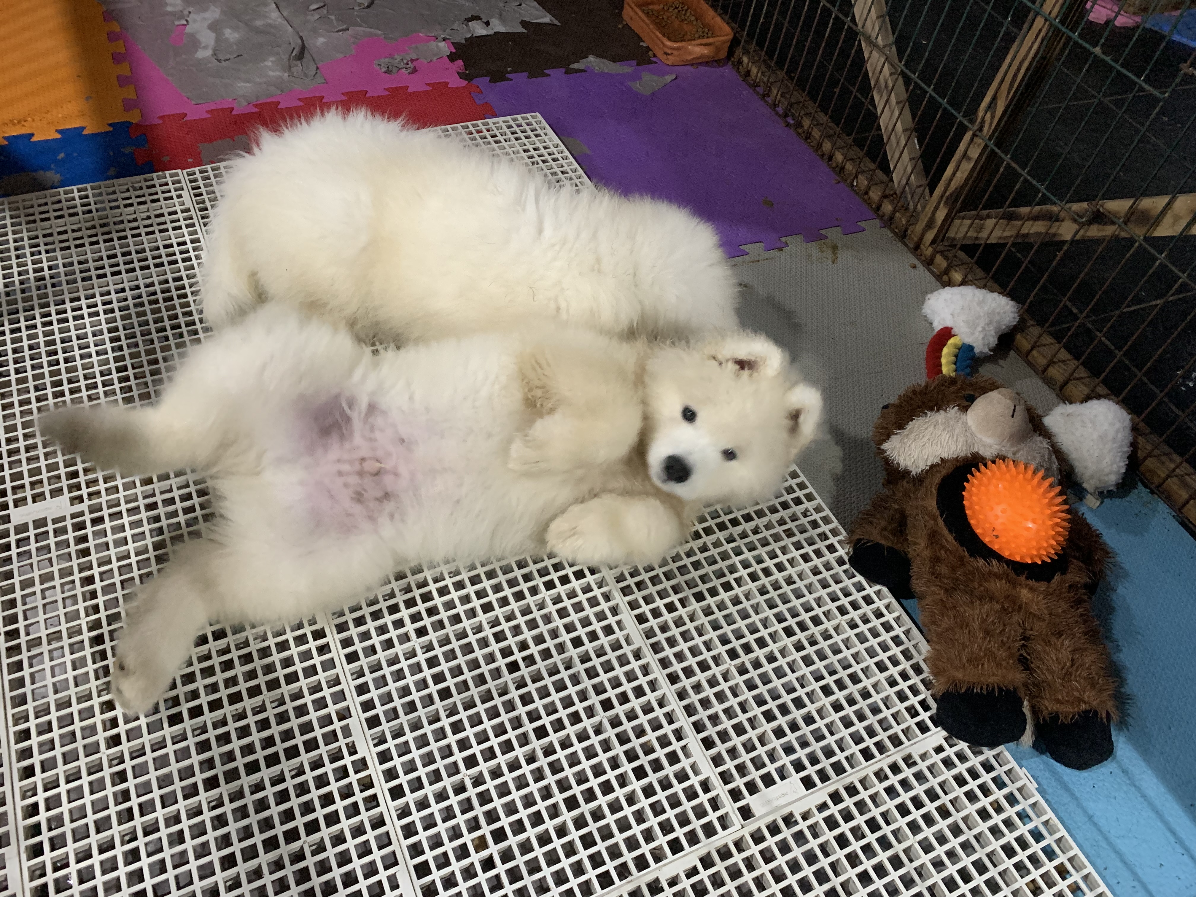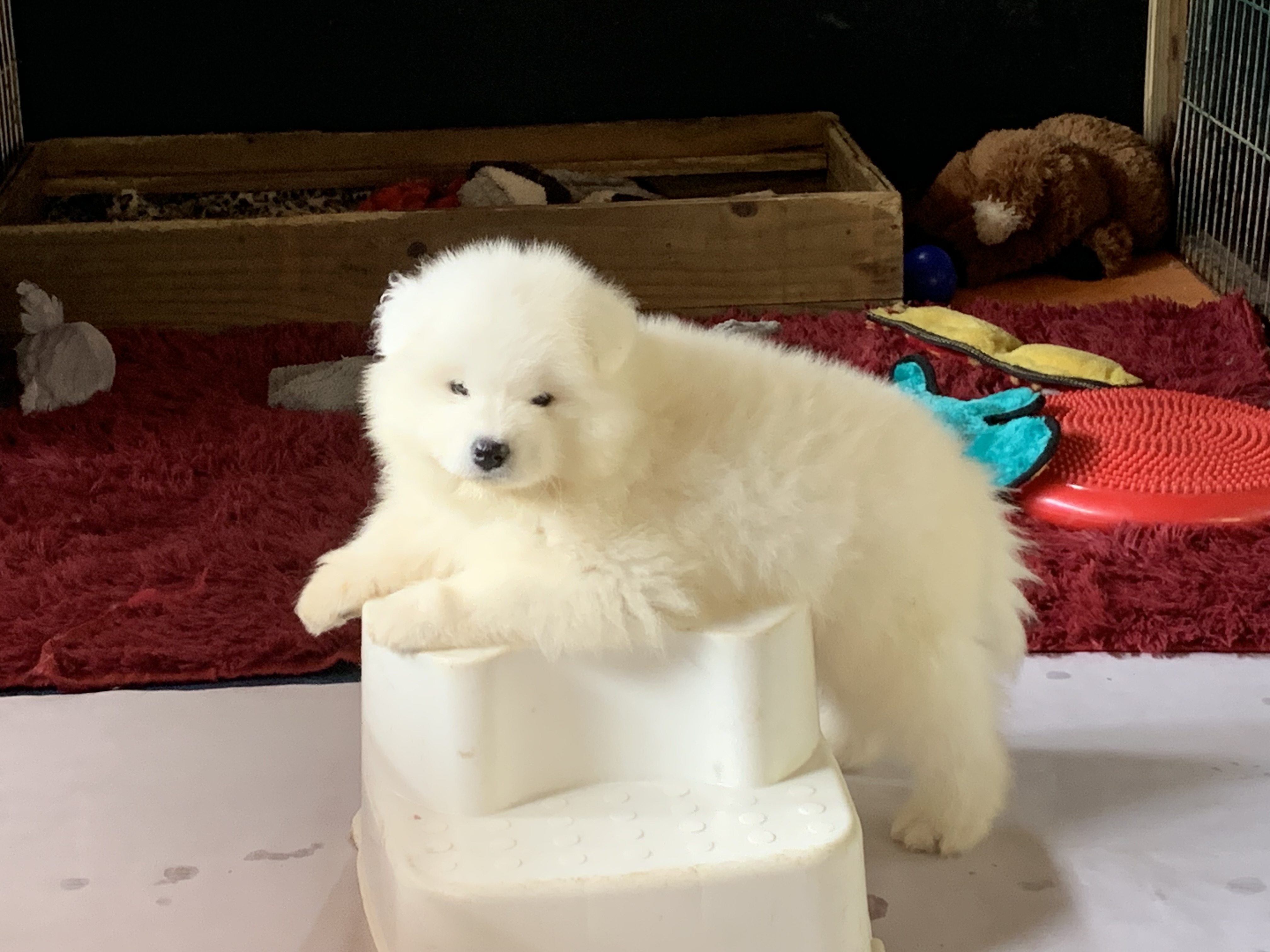 Os Samoiedas nascem brancos, com as extremidades rosadas, tais como focinhos e patas. O peso aproximado será de 0,300 a 0,400 gr.