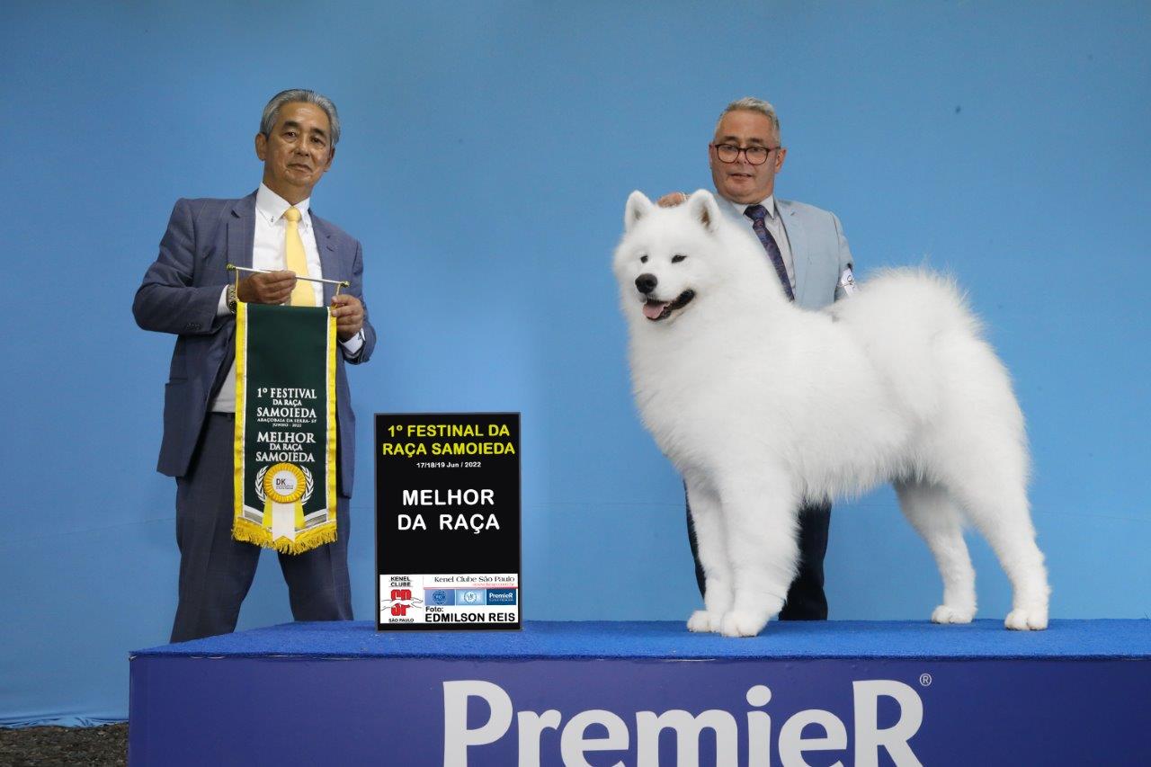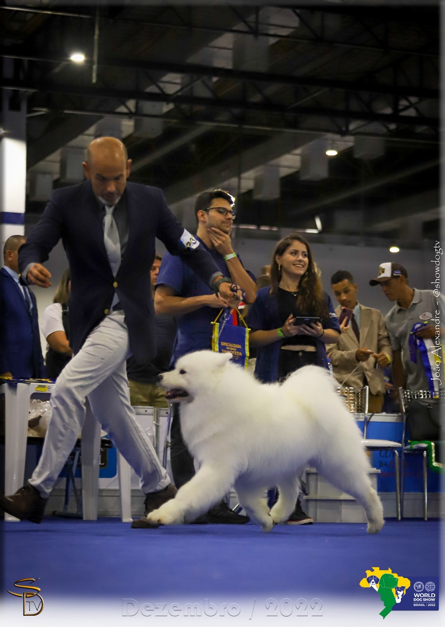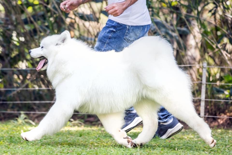 Dante, chega para dar continuidade ao nosso projeto, lastreado na excelente genética e tipo. Mais um importado do renomado criatório da Sra Lynette Blue, que acredita em nossa dedicação e empenho em criar Samoiedas de excelência . Sabiamos que não seria fácil trazer esse exemplar, mas em mais um gesto de desprendimento, Lynette Blue nos brindou com esse lindo Samoieda. Filho do grande 🇺🇸BISS Ch.Cabaka’s Qonjac Of Summertime e a encantadora 🇺🇸Polar Mist’s Girl On Fire. Seu pai foi o ganhador na exposição Nacional do “Samoyed Club Of America”, conquistou o titulo da melhor progênie. Seu avo 🇺🇸Multi BIS Multi RBIS Multi BISS Am.Dk.GCh.Polar Mist Kick Up The Party, foi melhor da raça em na disputadíssima Exposição de Westminster e 4o do working group. Sua avó Dk Nor Int Ch.Cabakas Summertime, uma das mais belas femeas do grande criatório Cabakas, na Dinamarca. Seu pedigree traz inúmeros campeões nacionais e de progênie. Sua consistência genética se comprova em seus 1os filhos, com muita qualidade e já destacando em pista.