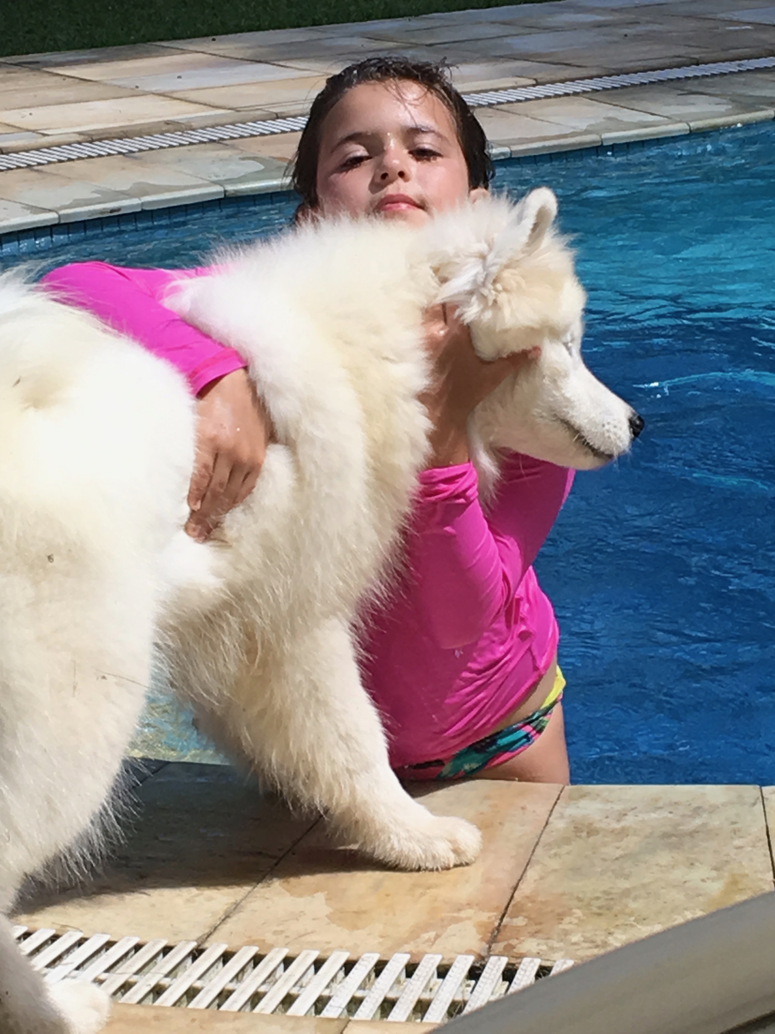 Se você tem outros animais em casa, o ideal é que o Samoieda seja criando com eles desde filhote e assim serão uma grande família. Convive bem com outros cães, já que se desenvolveu por muitos anos em matilha.Como qualquer cão ele pode tentar disputar o território, portanto atenção para evitar que possa gerar algumas brigas entre os cães.